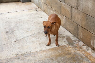 Als sich einige freiwillige Helfer von Melampo nach ihrem Dienst bei den Hunden auf den Heimweg machten, entdeckten sie in der Nähe des Tierheimes die süsse Breca. Sie schlief am Rand einer Strasse im Strassengraben. In dieser Nacht regnete es zudem noch stark: was für ein trauriger Anblick!