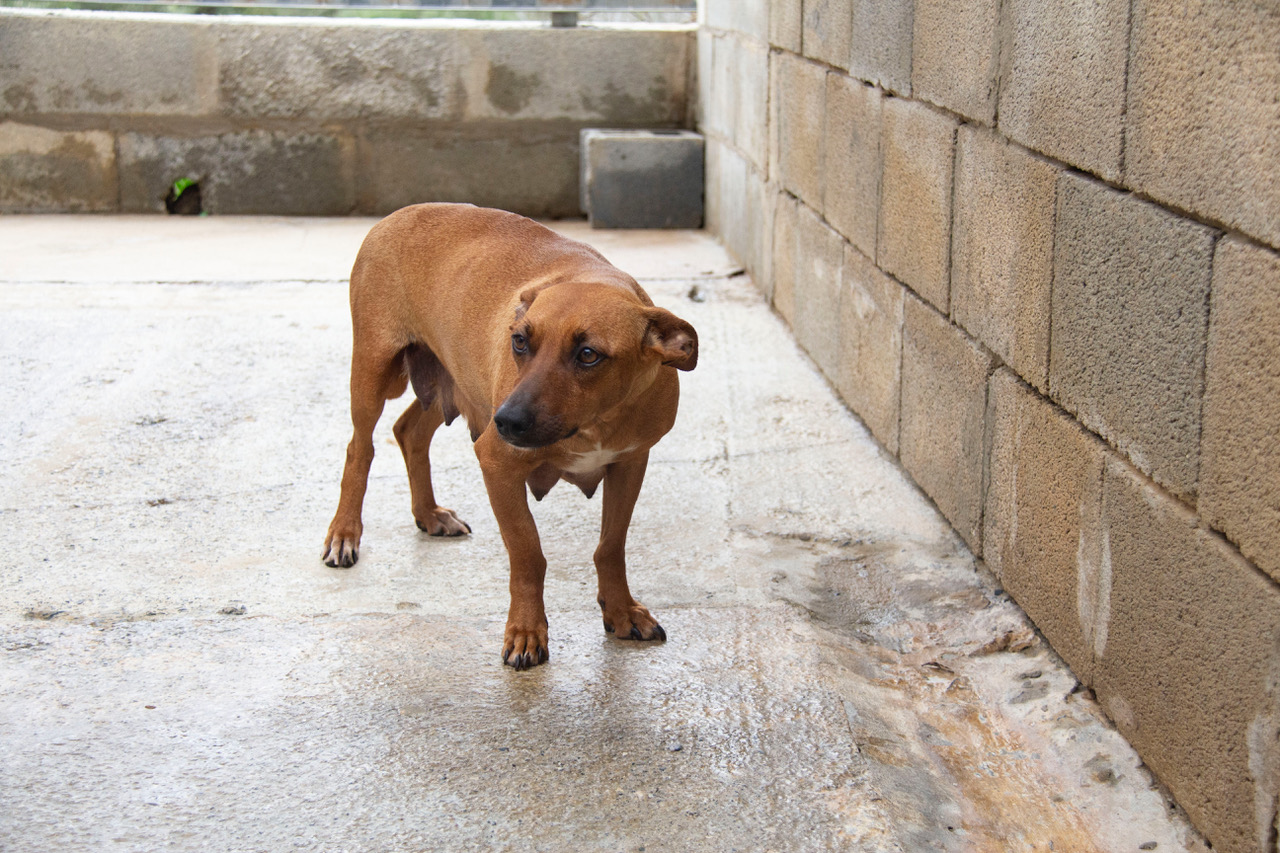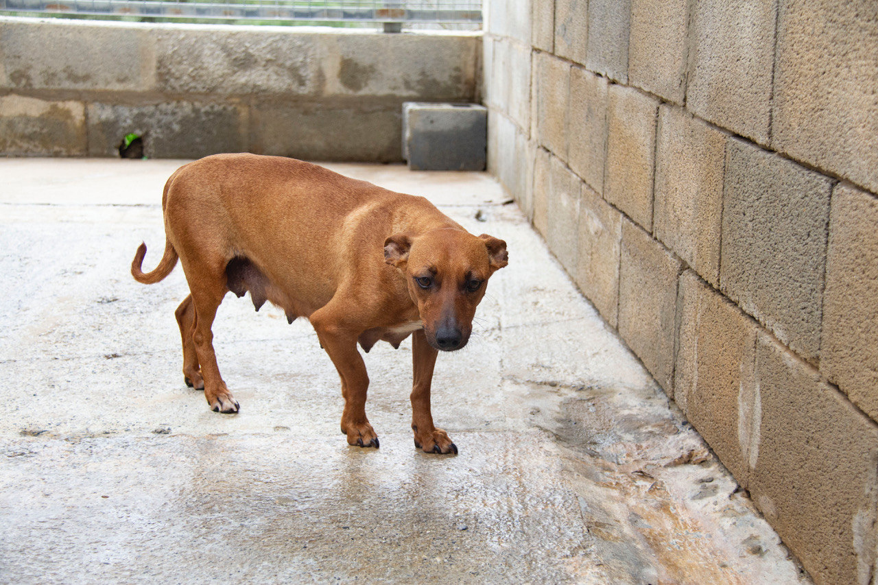 Als sich die Helfer Breca näherten, bemerkten sie sofort, dass sie trächtig war. Wir möchten uns gar nicht vorstellen, was passiert wäre, wenn die Helfer sie an diesem Abend nicht gefunden hätten. Sie hätte ihre Welpen wohl in Regen und Kälte im Strassengraben zur Welt bringen müssen.