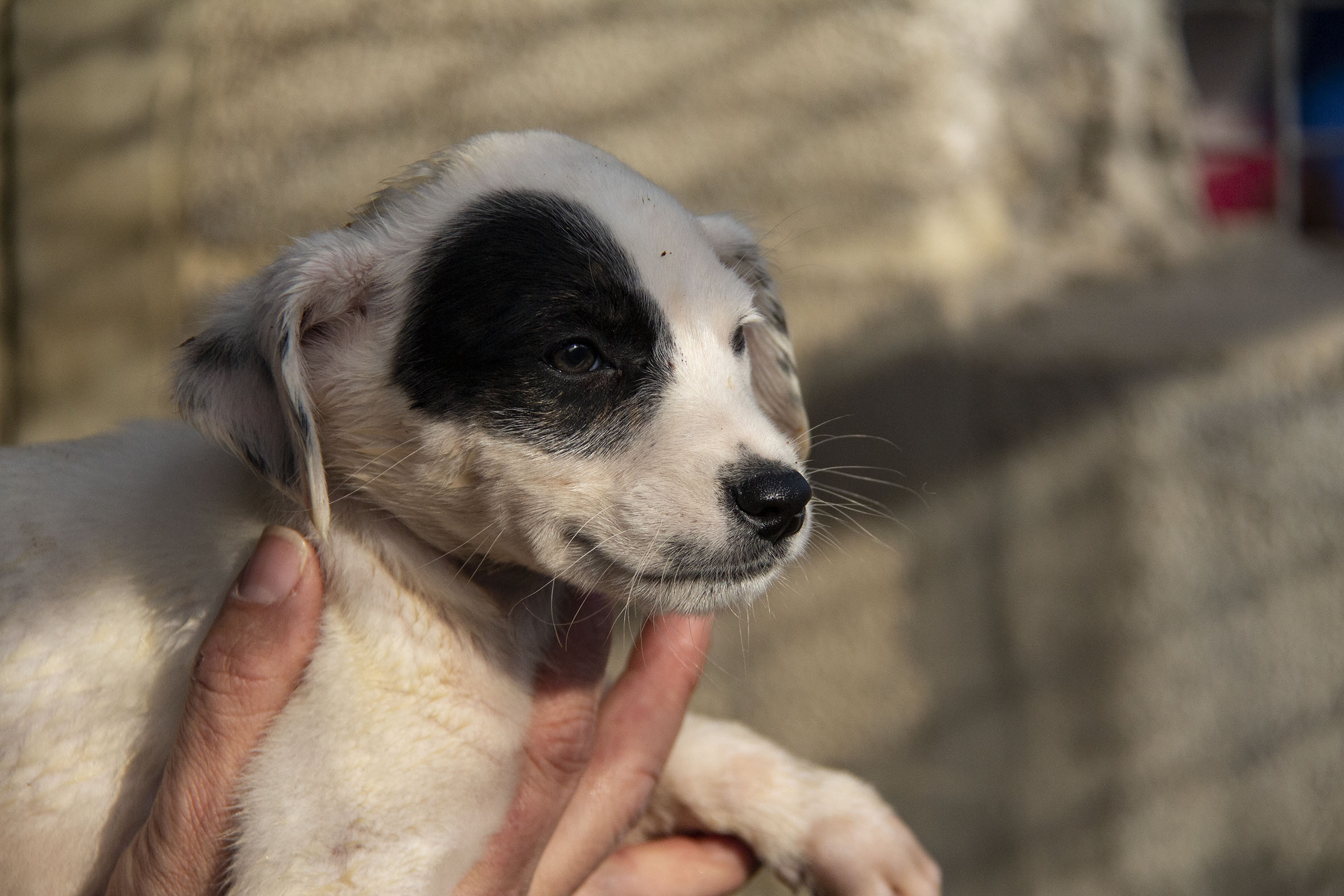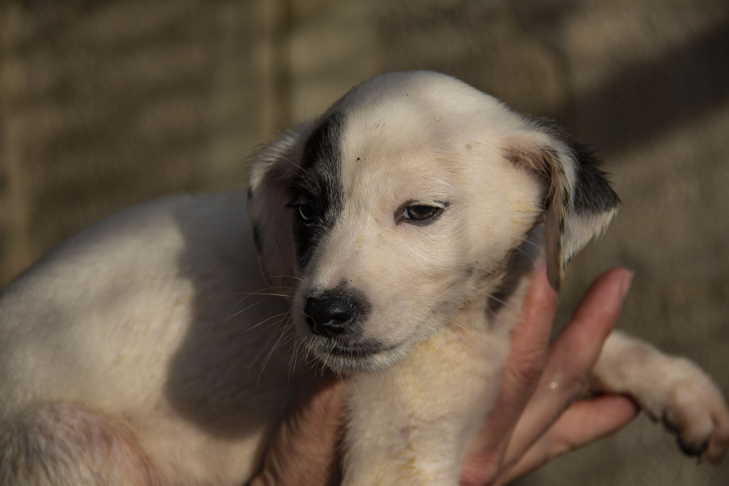 Die Mutterhündin Paloma wurde Rande einer Landstrasse gefunden. Ein Besitzer war weit und breit nicht in Sicht. Zum Glück konnten Helfer sie aus dieser gefährlichen Situation retten. Paloma war zu diesem Zeitpunkt auch noch hochträchtig. Paloma hatte zwar einen Chip und der Besitzer konnte auch kontaktiert werden. Er hatte allerdings kein Interesse daran, die Hündin zurückzunehmen (zu Palomas Glück).
