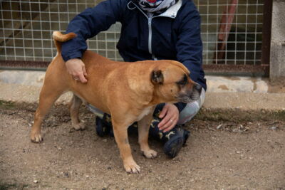 Unser lieber Ferdinand (der Stier) ist ein Bait Dog ein sogenannter Köderhund. Der dazu missbraucht wurde, um Hunde für Hundekämpfe scharf zu machen. Ihm Wurden beide Ohren ganz kurz abgeschnitten so wie sein Schwanz kupiert.