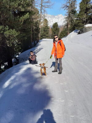 Gloria geht nun bereits in einer kleinen Hundegruppe in den Auslauf, was sehr gut klappt.