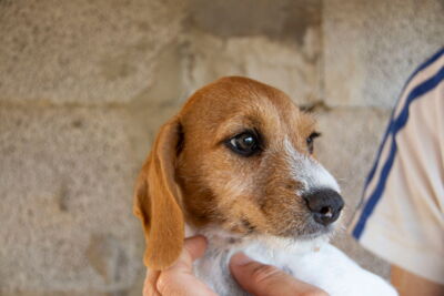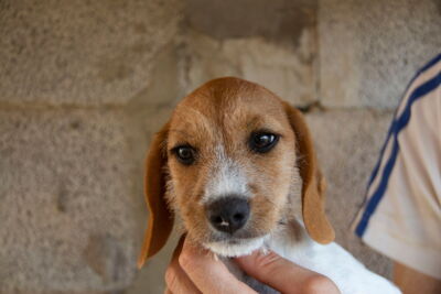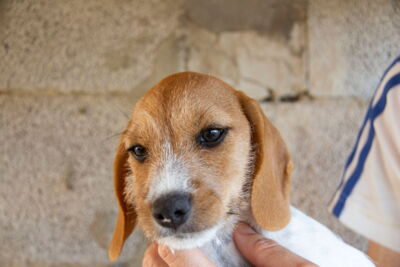 Wir fanden heraus, dass die Mutterhündin Jara gechippt war. Da der Besitzer nicht kontaktiert werden konnte und die Hündin auch nicht als vermisst gemeldet war, informierten wir die Polizei, ohne etwas von den Welpen zu sagen. Wir hoffen, dass wir zu einer Verzichtserklärung kommen, Jara nicht zurückgeben müssen und auch sie bald publizieren dürfen. Sie ist als „Schweisshund“ eingetragen. Wir denken aber, dass es sich um einen Beagle-/Dackelmix handelt. Sie ist etwa 25cm gross und und 10kg schwer.