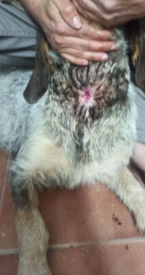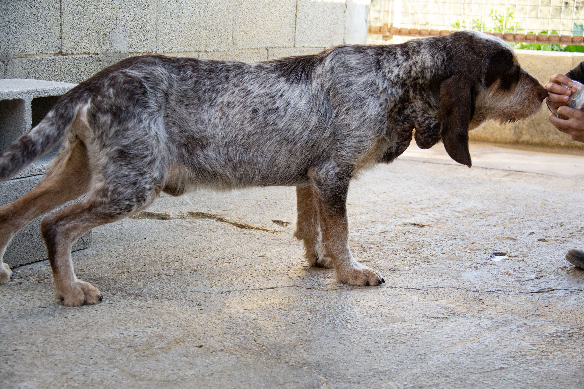 Der liebe Marques wurde von Melampo-Freiwilligen gerettet, zum Tierarzt gebracht und von diesem professionell versorgt. Nun erholt er sich sehr gut von seinen Verletzungen, er nimmt an Gewicht zu und hat gezeigt, dass er ein toller Hund ist. Denn trotz der Schäden, welche Menschen ihm zugefügt haben, vertraut er uns immer noch und ist sehr dankbar für die Aufmerksamkeit, die er vom Tierarzt und von den freiwilligen Helfern bekommt.