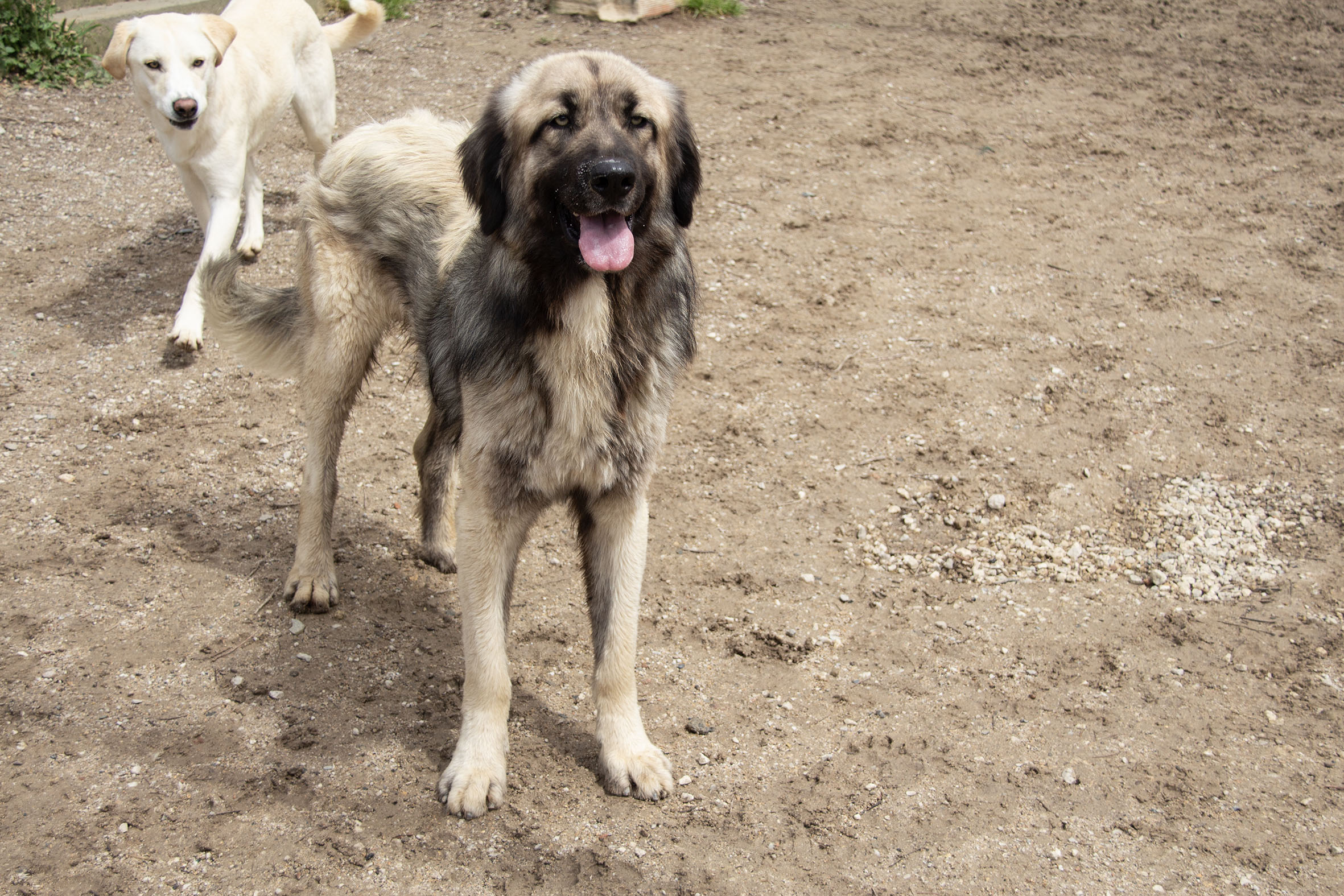 Milos hat einen guten Charakter, er sucht keinen Streit, aber wenn er stark bedrängt wird, weiss er sich zu verteidigen. Er ist gehorsam und lässt sich gut führen. Er lebt mit Rüden und Hündinnen zusammen und geht problemlos in der grossen Hundegruppe in den Auslauf. Menschen gegenüber ist er anhänglich und sucht aktiv ihre Aufmerksamkeit.