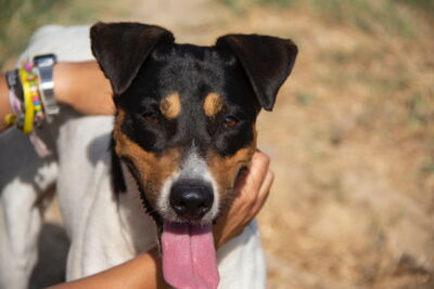 Parche möchte seinen Menschen überall hin begleiten, das kann er auch gut; er ist unerschrocken und fährt gerne Auto. Er wäre sicher auch ausgezeichnet in jeder Art von Nasenarbeit. Gerne kommt er auch einfach spazieren und nachher kuscheln auf dem Sofa, Hauptsache mit seinem Menschen.