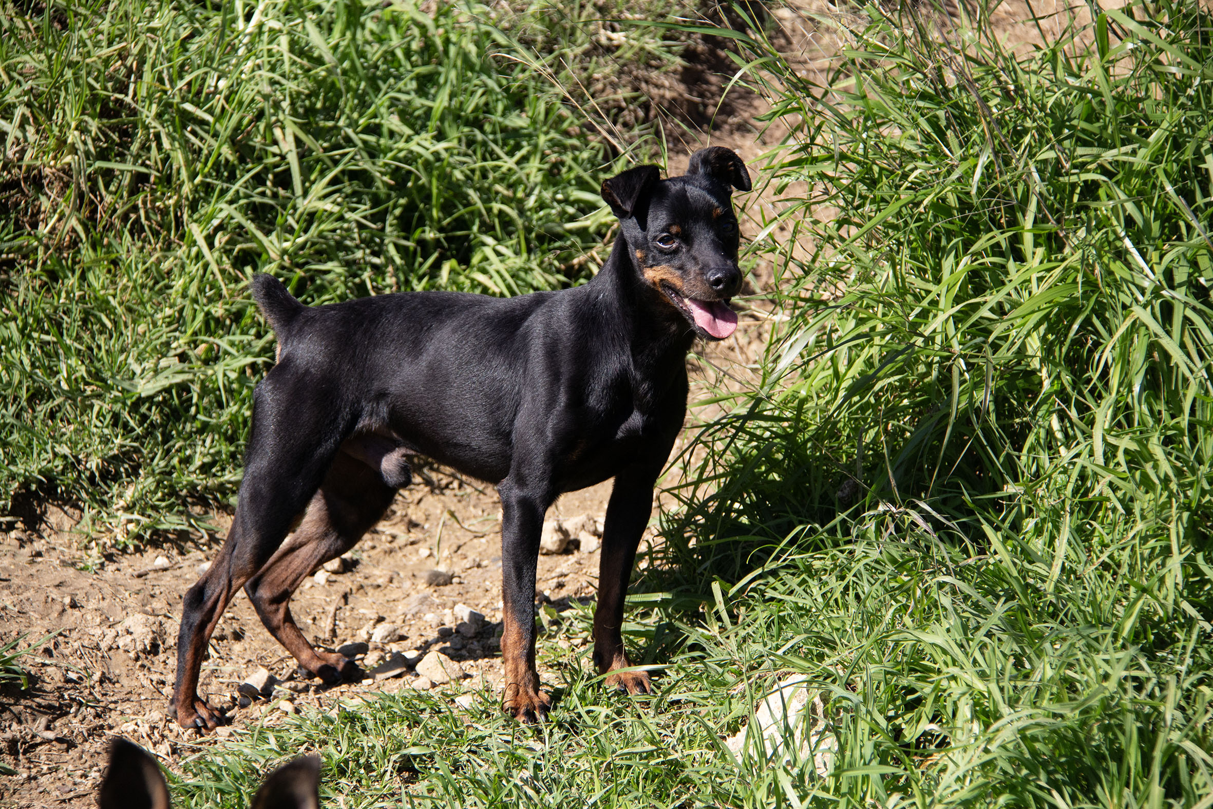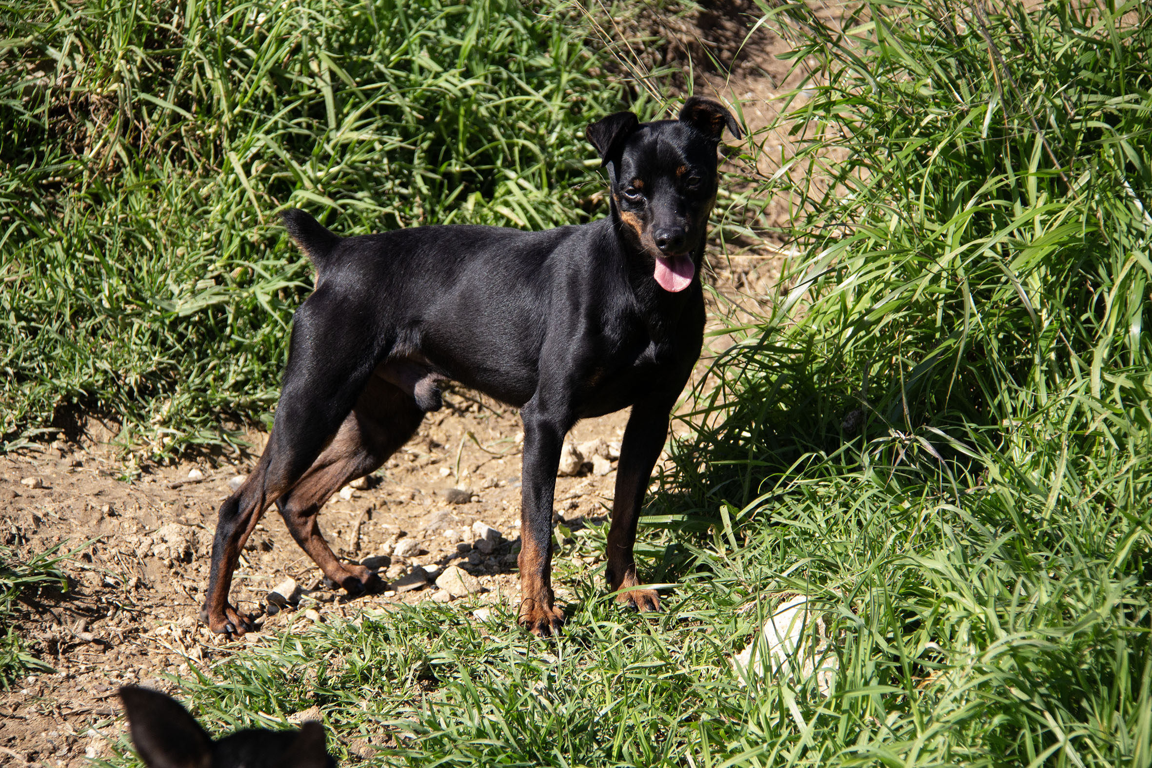 Rosmon läuft schon gut an der Leine, ist fröhlich, aufmerksam und lustig. Auch das Autofahren klappt problemlos. Er ist noch etwas unsicher und kann knurren, wenn man ihn hochnimmt – allerdings hat er in den letzten Wochen grosse Fortschritte gemacht. Für Rosmon ist ein ruhiges Zuhause ohne Kinder geeignet. Da er kupiert ist kann er nur ausserhalb der Schweiz vermittelt werden