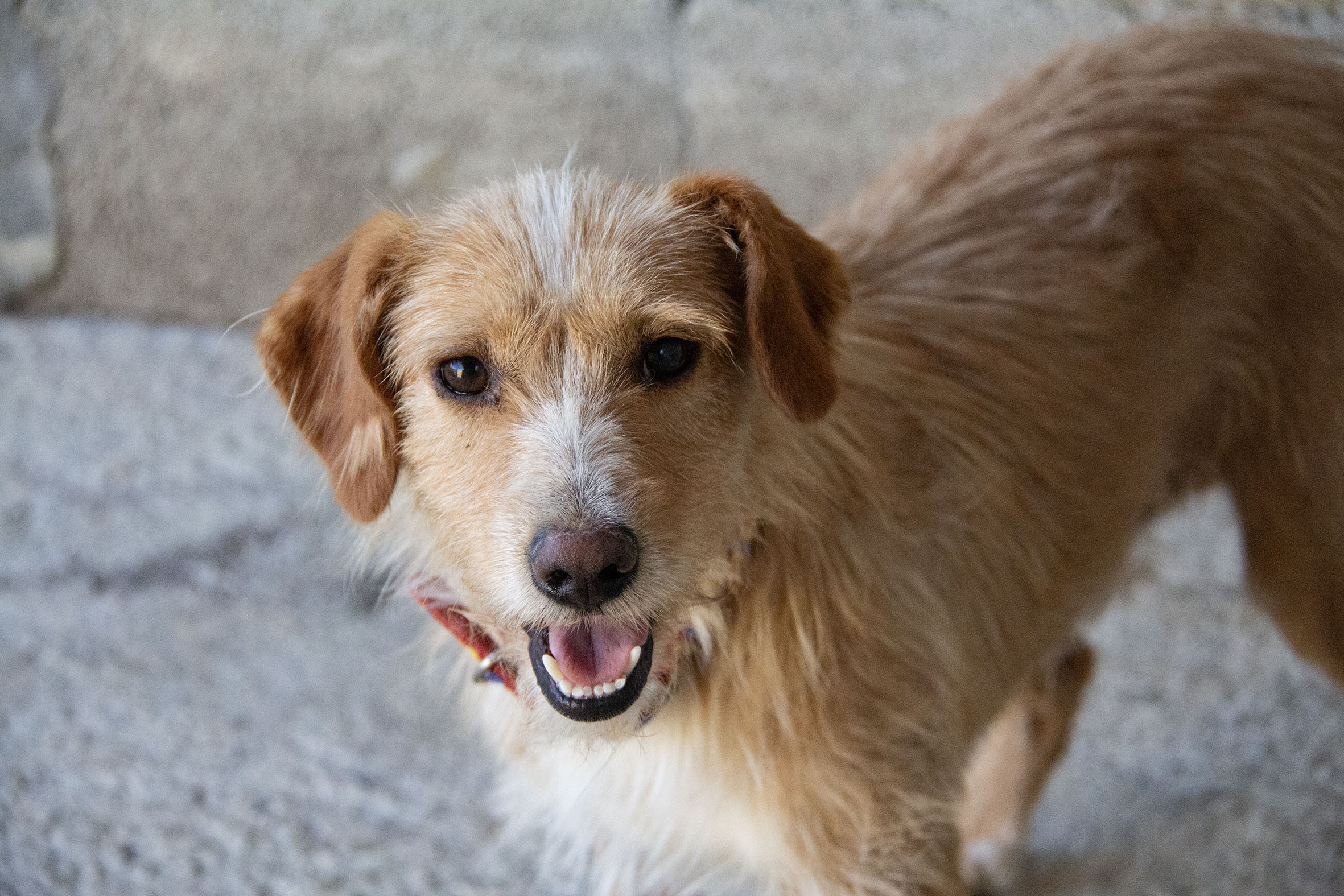 Strupi lebte an einer abgelegenen Landstrasse. Einige Personen gaben ihm zu fressen aber es gelang ihnen nicht ihn einzufangen. Melampo wurde gebeten zu helfen und mit ganz viel Geduld, täglichen Besuchen und Fütterung, ist es gelungen Strupi zu retten.