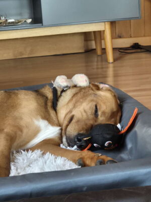 Tambo ist grundsätzlich futtermotiviert und verfressen – er bettelt jedoch am Tisch nicht, da dies konsequent unterbunden und von ihm akzeptiert worden ist. Futterneid oder Ressourcenverteidigung sind jedoch kein Thema. Er geniesst die täglichen Spaziergänge und wäre sicherlich auch für diverse Tricklis zu begeistern. Er ist jedoch wohl eher nicht ein Hund für Hundesport oder sonstige Aufregung. Er braucht auch nicht jeden Tag 4h Auslauf. Auf der Pflegestelle werden täglich 2-3 Spaziergänge mit insgesamt ca. 10km mit ihm gemacht. Am liebsten ist Tambo in seinem warmen Zuhause, nahe seinen Menschen.