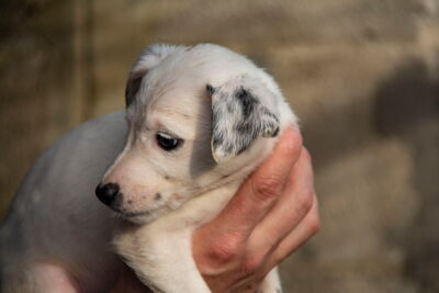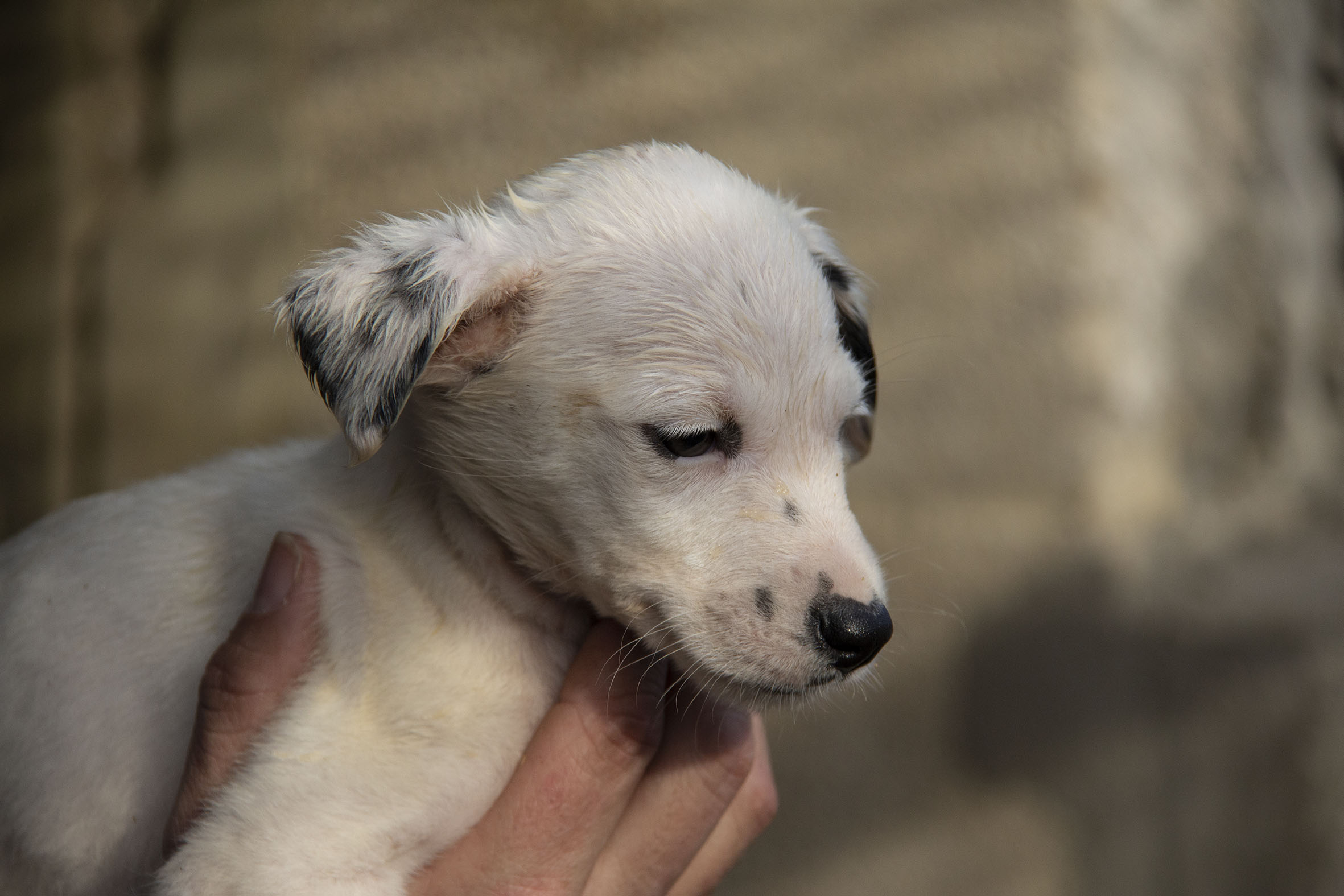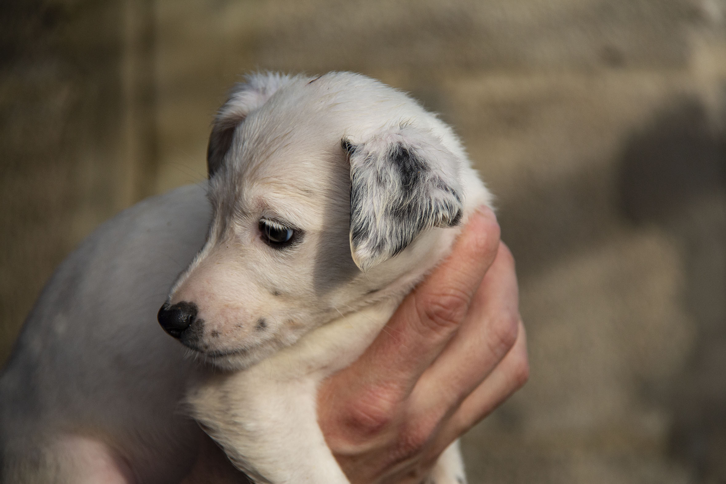 Die Mutterhündin Paloma wurde Rande einer Landstrasse gefunden. Ein Besitzer war weit und breit nicht in Sicht. Zum Glück konnten Helfer sie aus dieser gefährlichen Situation retten. Paloma war zu diesem Zeitpunkt auch noch hochträchtig. Paloma hatte zwar einen Chip und der Besitzer konnte auch kontaktiert werden. Er hatte allerdings kein Interesse daran die Hündin zurückzunehmen (zu Palomas Glück).