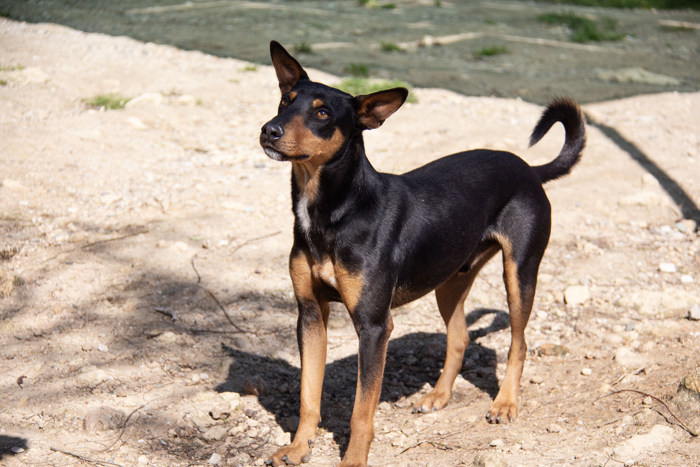 Mit ihrem Alter von vier Monaten handelte es sich wahrscheinlich um einen ungewollten Wurf. Da es wohl keine reinrassigen Podencos sind, taugten sie den Jägern wohl nicht zur Jagd. Zu ihrem Glück befinden sie sich nun in Melampo an einem sicheren Ort und sie haben die Chance auf eine glückliche Zukunft.