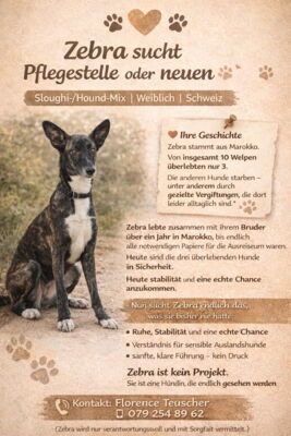 Zebra lebte zusammen mit ihrem Bruder über ein Jahr in Marokko, bis endlich alle notwendigen Papiere für die Ausreise zusammen waren.