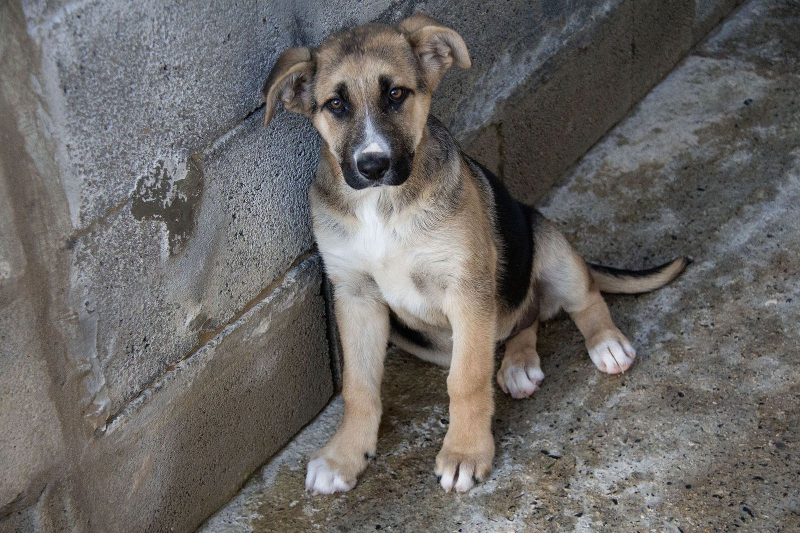 Tria wurde unter einem Auto entdeckt. Sie lag dort ganz alleine, von einem möglichen Besitzer weit und breit keine Spur. Sie war zu diesem Zeitpunkt noch nicht einmal drei Monate alt.